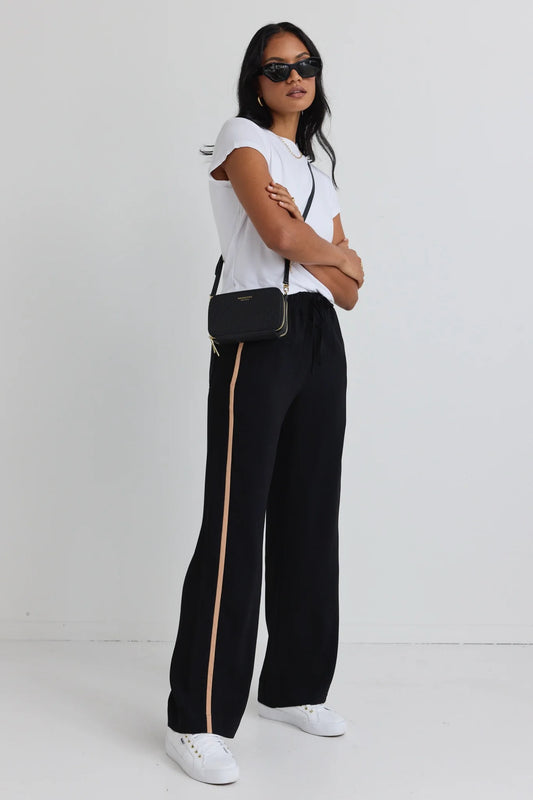 Confident Stripe Leg Crepe Wide Pants - Black
