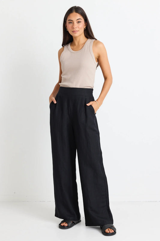 Guardian Linen Viscose Elastic Back Pants - Black