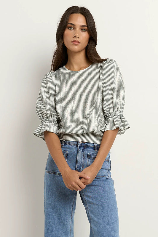 Lovely Shirred Top - Khaki Stripe