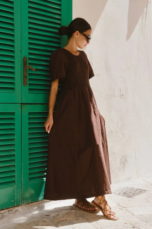 Wren Linen Midi Dress - Chocolate