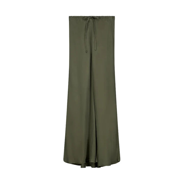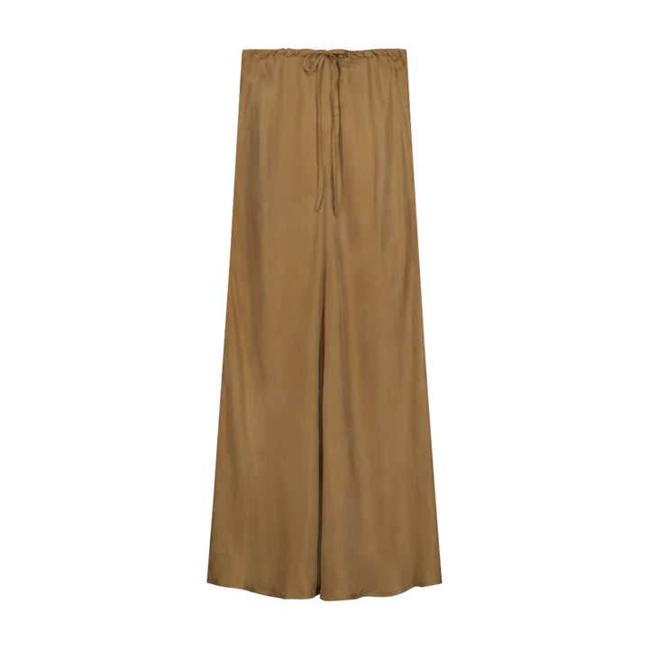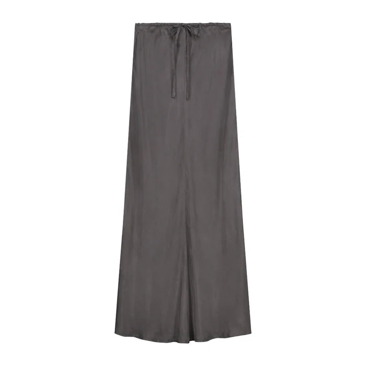 The only skirt you need. Maxi length & made in silky soft cupro fabric. Comfortable elasticated waist with a cute drawstring tie. Wear all year round with knits, tees, sandals or sneakers.