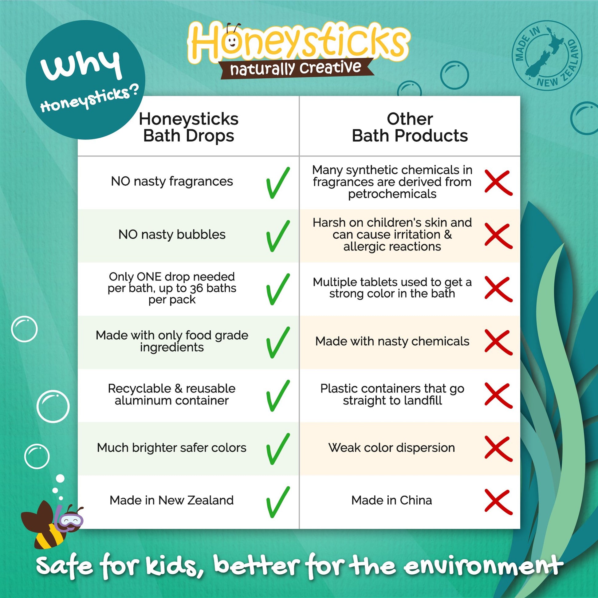 ALL NATURAL BATH BOMBS FOR KIDS - Make bath time an adventure with Honey Sticks Kids Bath Bombs made in New Zealand from natural and food grade ingredients.