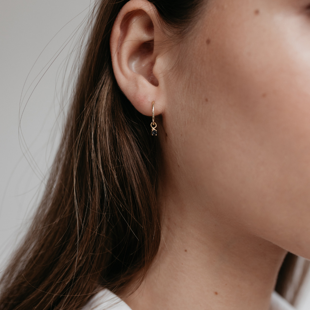 Simple mini rock black sleepers. Super sweet on their own, even better layered with other earrings.
