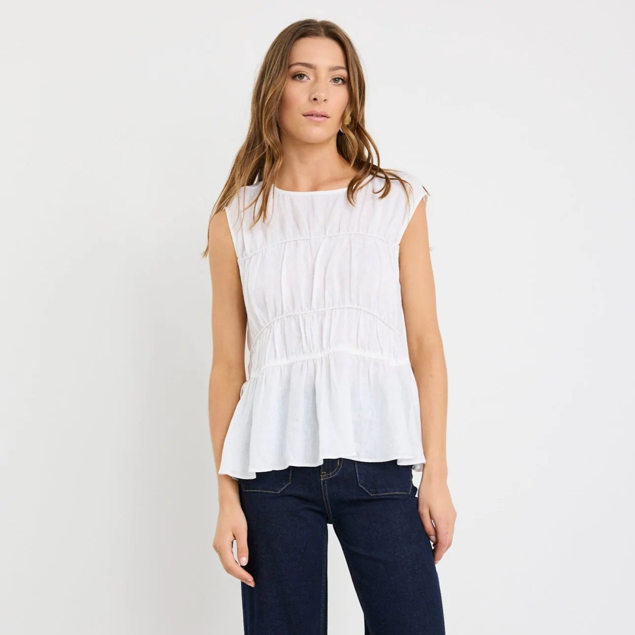 Light, breezy, and oh-so-chic, the Context top will become a wardrobe favourite. Crafted from 100% linen, this natural fibre style features feminine gathered details with soft tie accents for an elevated, playful twist.