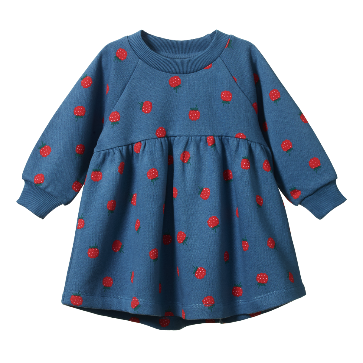 The Ines Dress is a simple yet fun style perfect for those everyday adventures. The design features cosy long raglan sleeves and a roomy fit for everyday wear. The sleeve hems are finished with rib cuffs to keep arms toasty, while the skirt is gathered to create a touch of fullness.