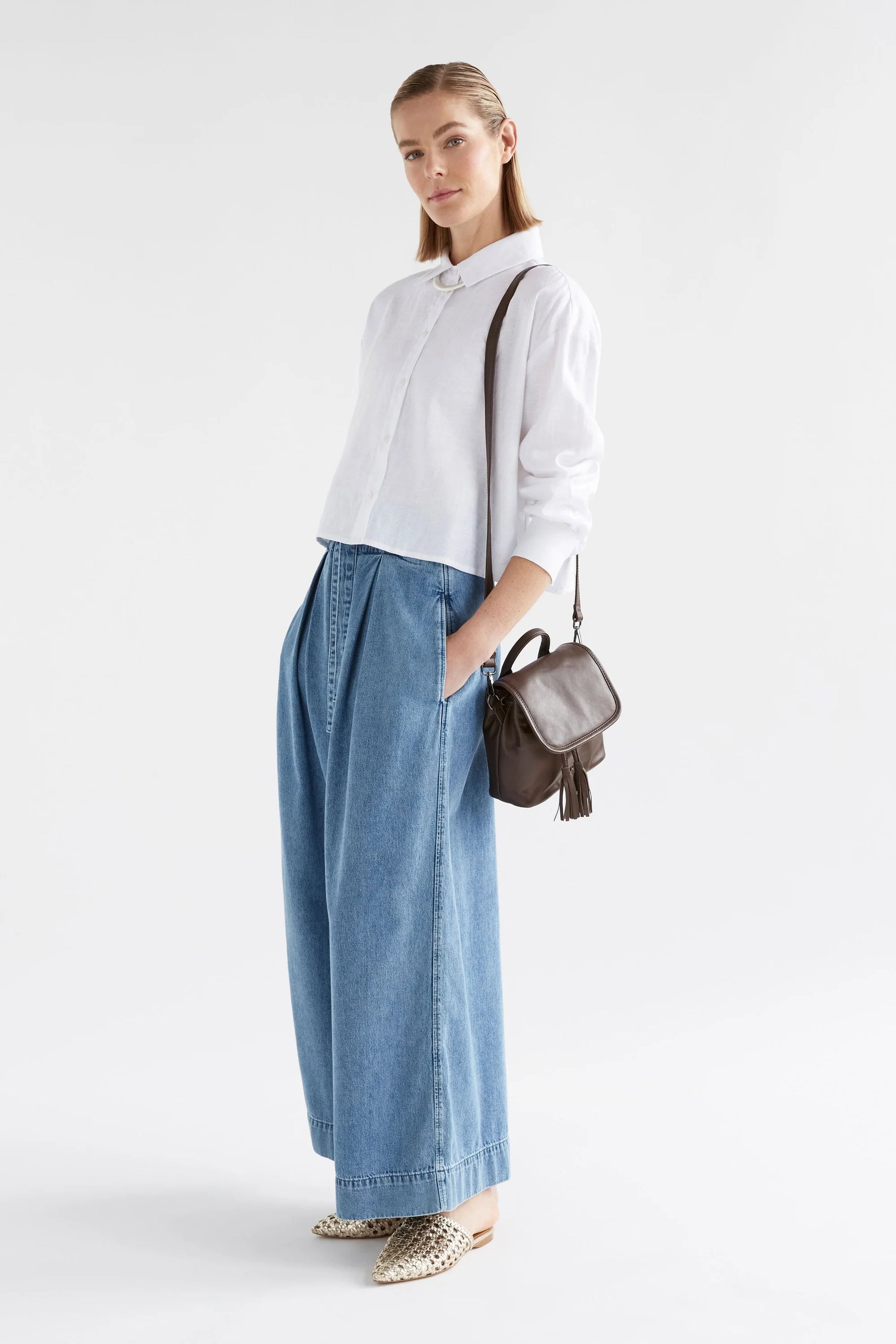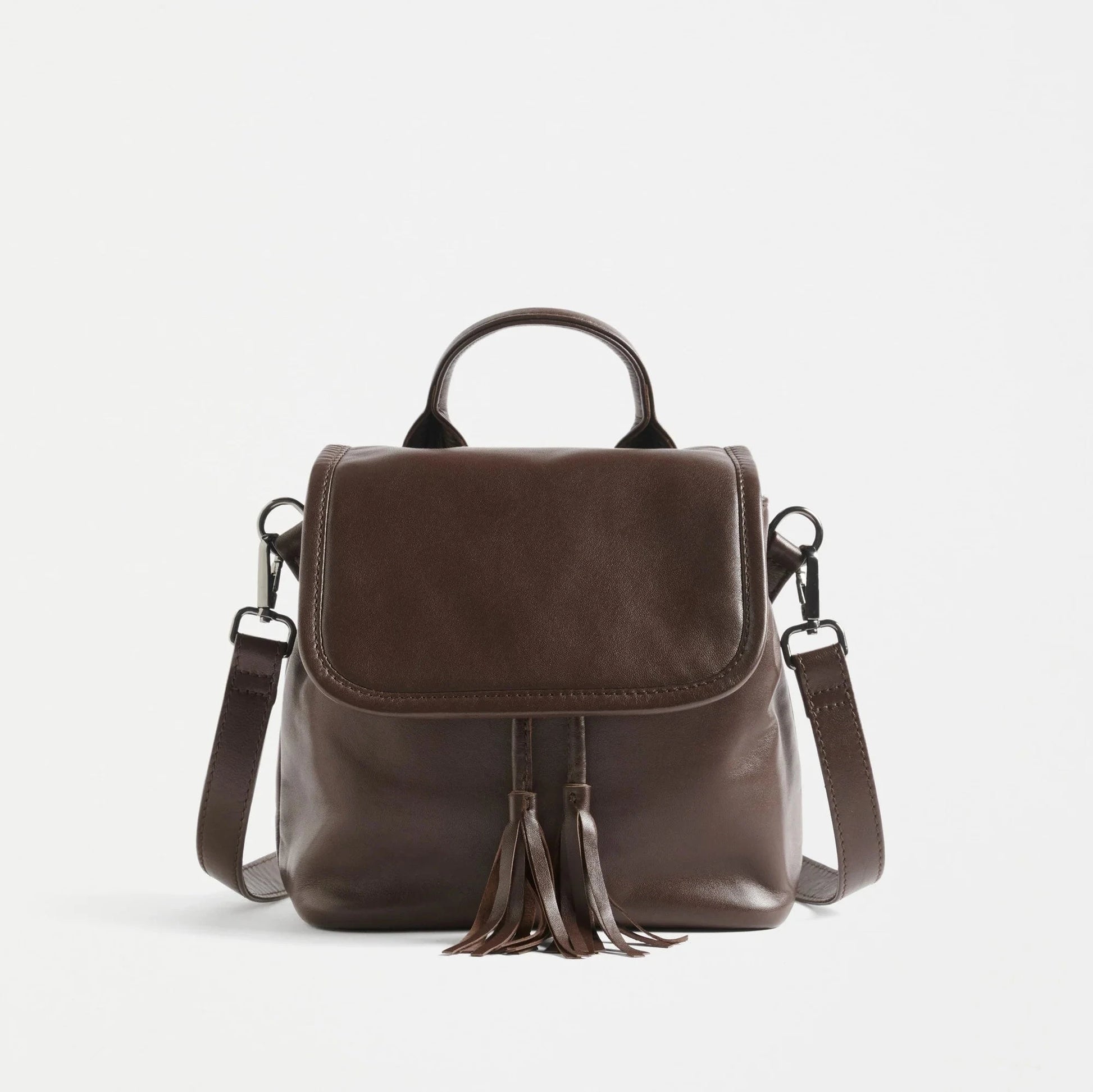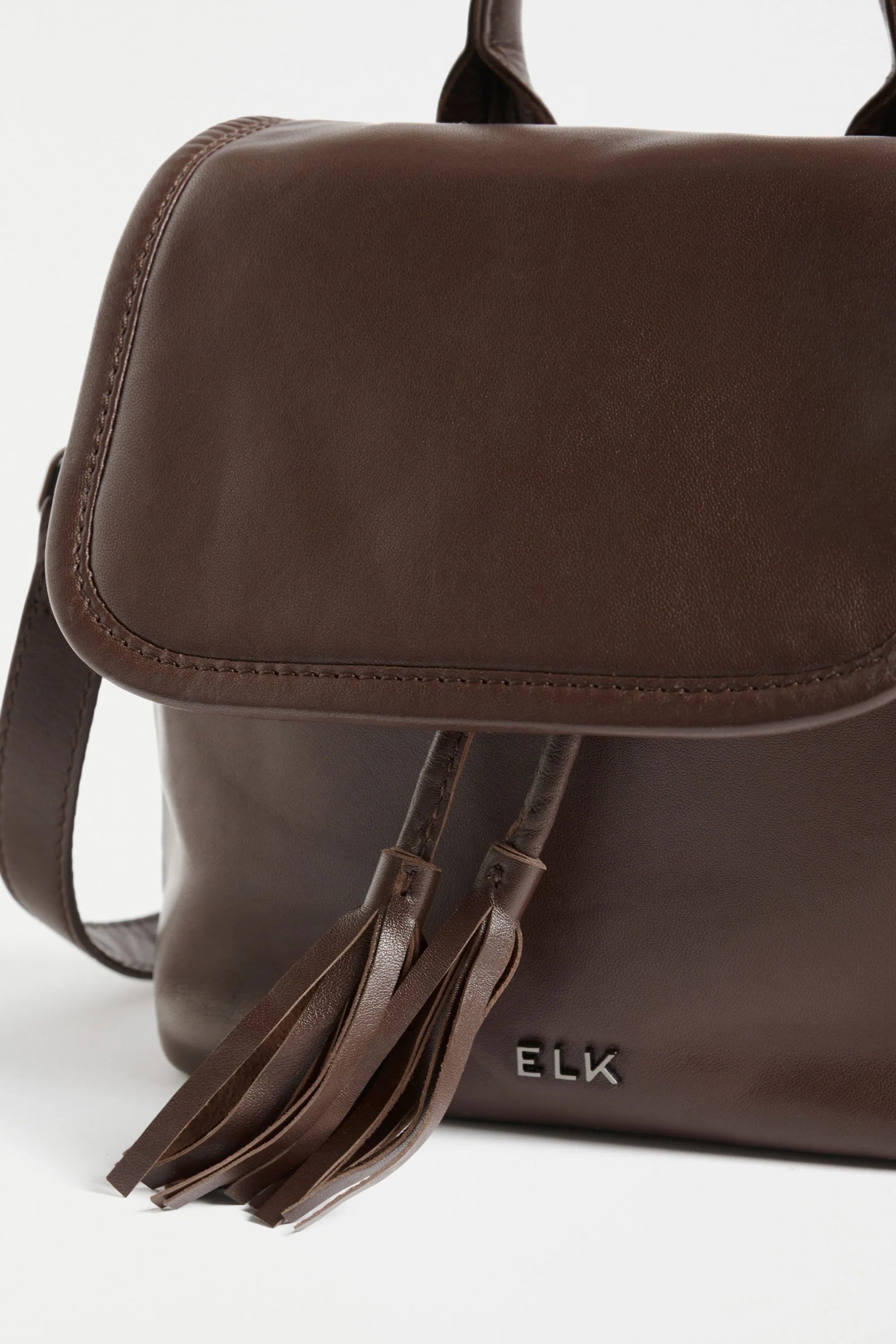 The Jago Crossbody is a small bag crafted from remnant leather. The bag closes by pulling together the tasselled leather drawstrings that peak boldly from under the front flap. Designed to be held by the fixed top handle or worn crossbody with the adjustable leather strap. Available in classic Black and Chocolate Brown, as well as a vibrant Green. Remnant leathers naturally absorb colour differently throughout textile. This is the nature of the skins and gives each bag a unique finish.