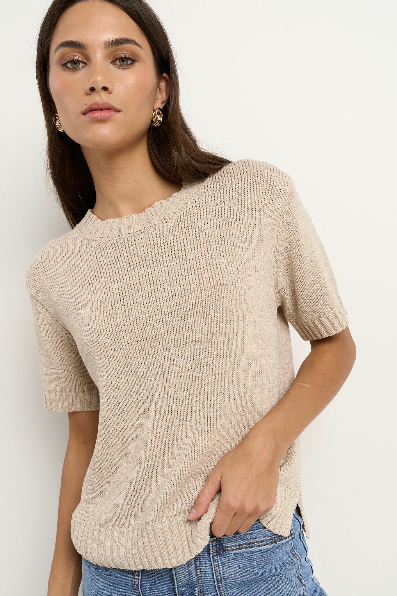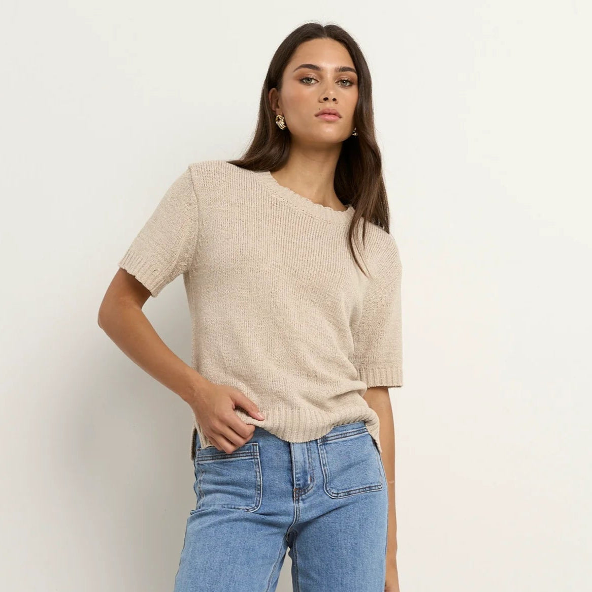 The Loveable knit top is an effortlessly chic essential with its soft, textured finish and relaxed shape. Its short sleeves and natural-toned hue make it the ultimate throw-on piece that still looks polished. Lightweight and delicate, it’s ideal for those days when you want comfort without compromising style.