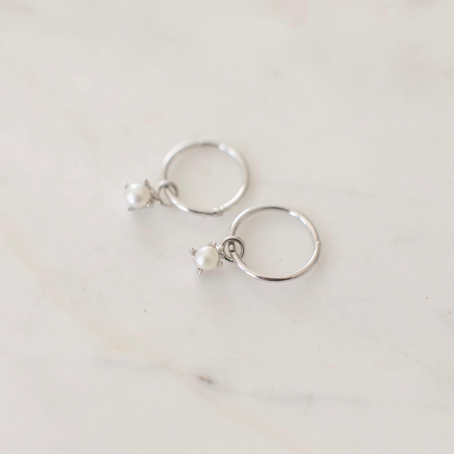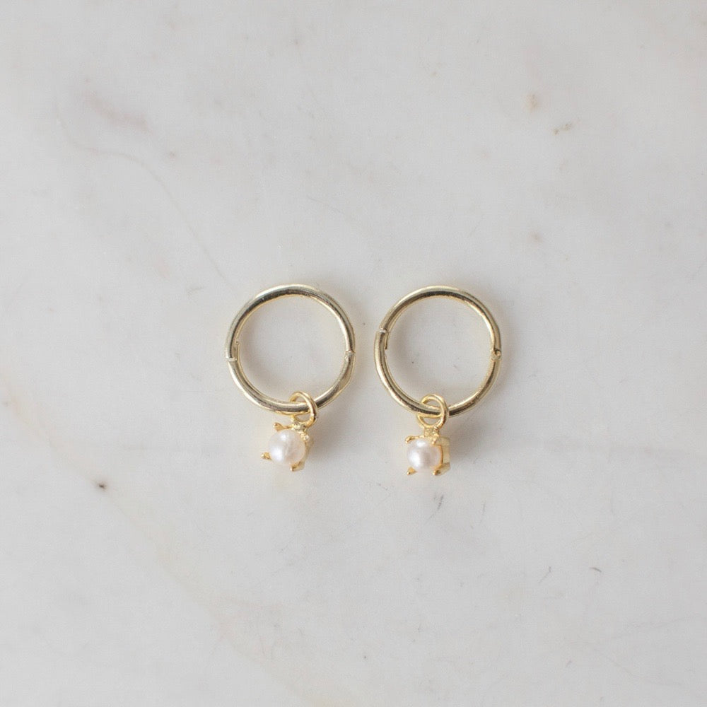 Simple mini pearl sleepers. Super sweet on their own, even better layered with other earrings.