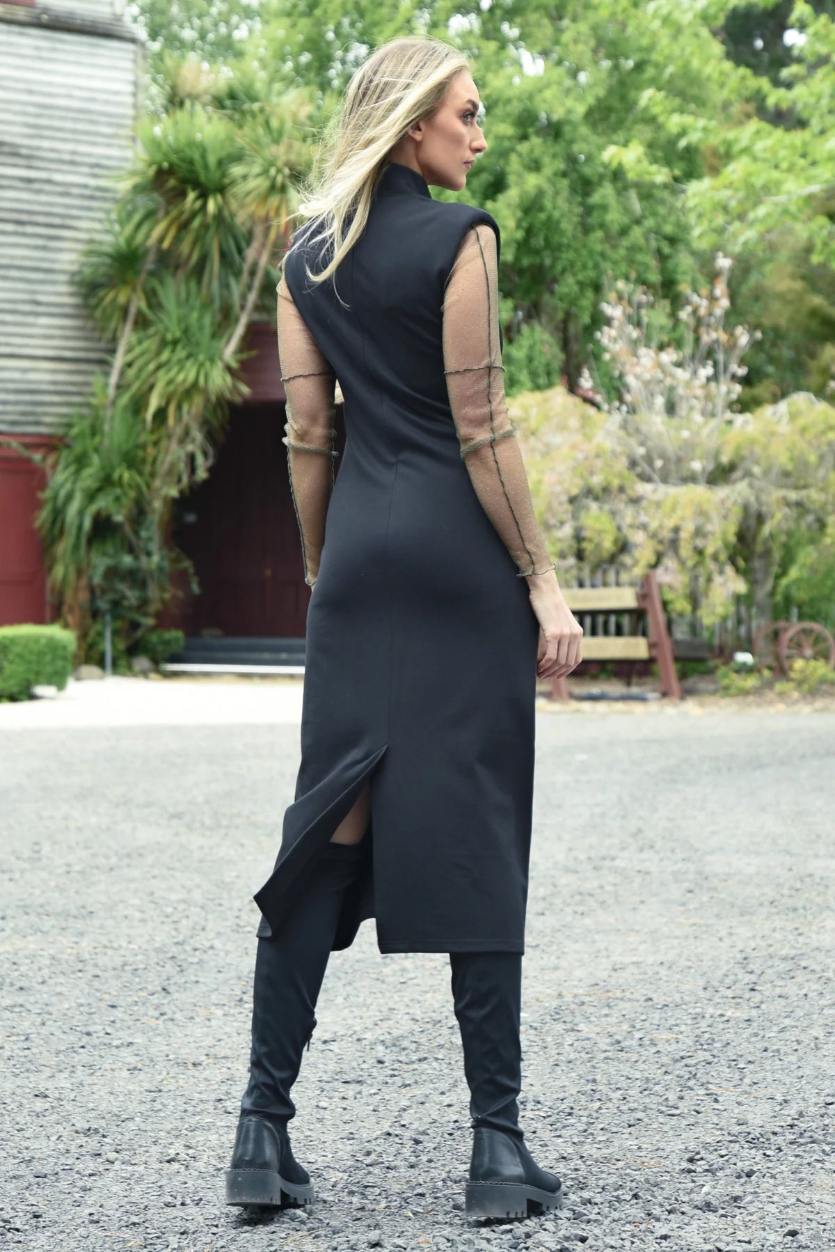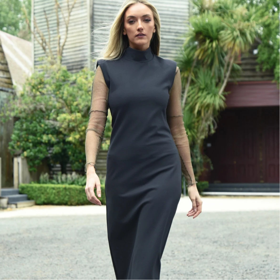 Make a bold power move without compromising on comfort with the ‘Mocktail Party’ dress. Crafted in the ‘Stretchy Business’ weighty, Ponte fabric this dress cuts a shaped silhouette that contours the body for the most flattering fit. With a chic funnel neck and strong padded shoulders this dress screams boss babe.