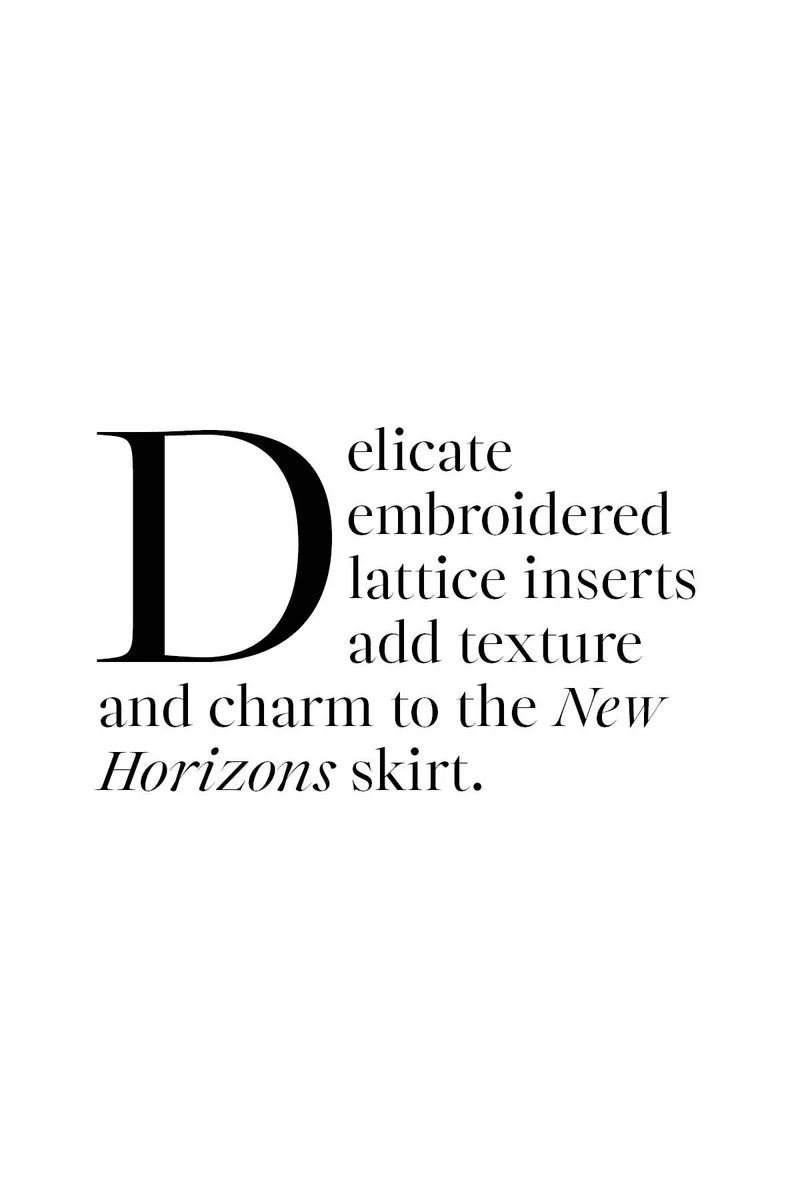 Drifting with an easy grace, the 'New Horizons Skirt' in our crisp 'Get the Look' cotton poplin brings soft movement to your everyday rhythm. Embroidered lattice inserts add delicate texture, while the elasticated waistband ensures effortless wear. Fully lined for comfort and gentle structure, it’s a piece that feels as light as the day ahead.