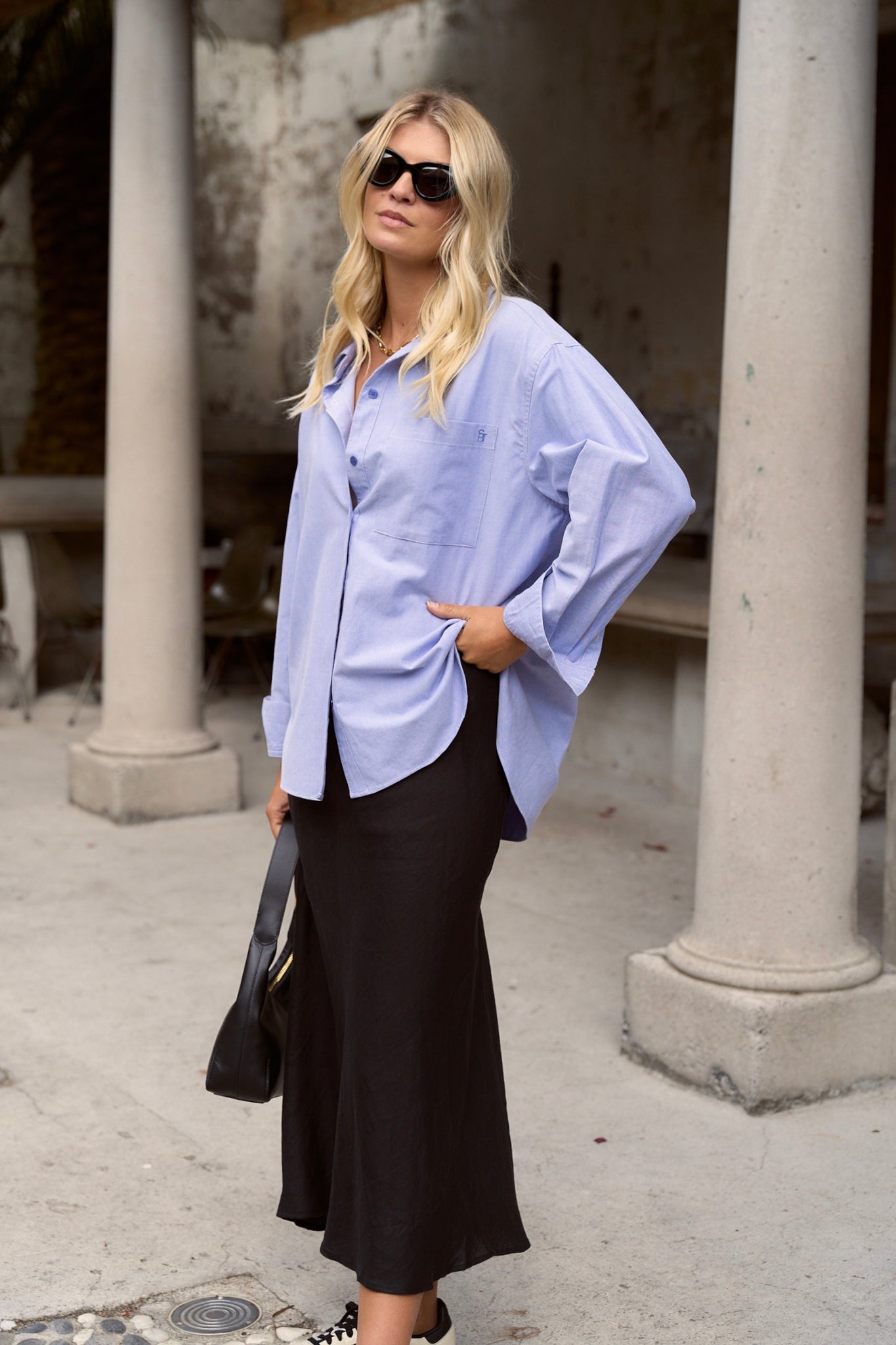 Meet your new wardrobe essential, the Signature Blue Oversized Shirt. Effortlessly cool and endlessly versatile, this shirt is crafted from 100% natural cotton, making it ultra-breathable and soft to the touch. Designed with a relaxed oversized fit, a crisp button-down front, and a classic collar, it strikes the perfect balance between laid-back and polished. Style it with denim for an off-duty look or layering it over a slip dress, this piece is your go-to for effortless dressing.