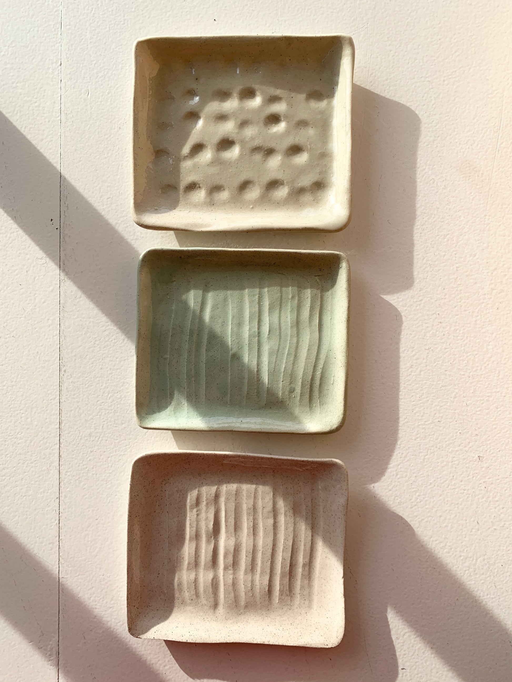 Melanie Drewery makes all of her pottery in Ruby Bay, Nelson. Please note: each piece is a little different due to the individual handmade nature so please use these photos as examples of the various colours and iterations that may be available. Contact us to find out more about the soap dishes currently in store.