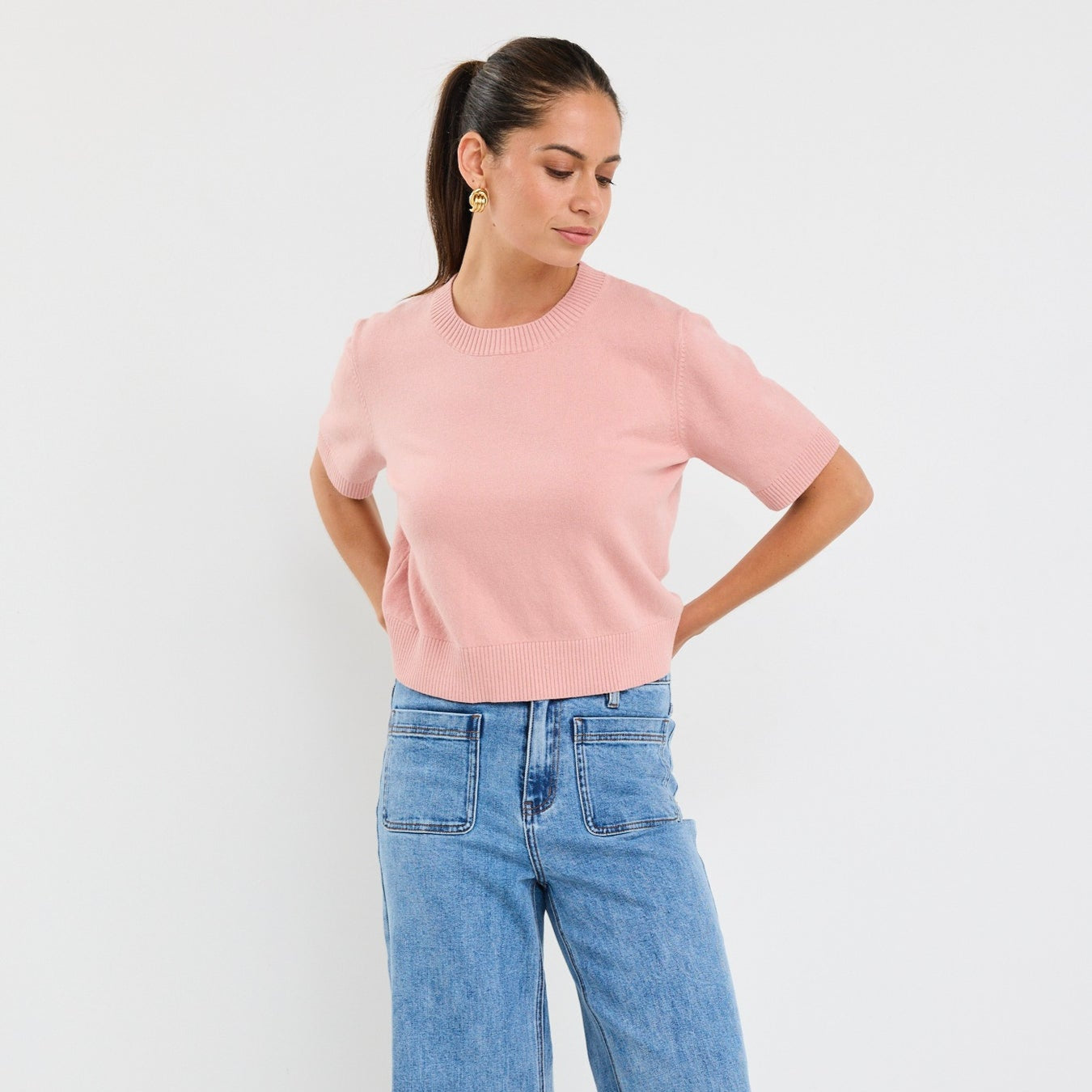 The Topic blush tee brings soft sophistication to your everyday edit. With its buttery cotton-cashmere blend and minimal silhouette, this knit tee feels as good as it looks. It's the kind of piece you’ll reach for time and again.