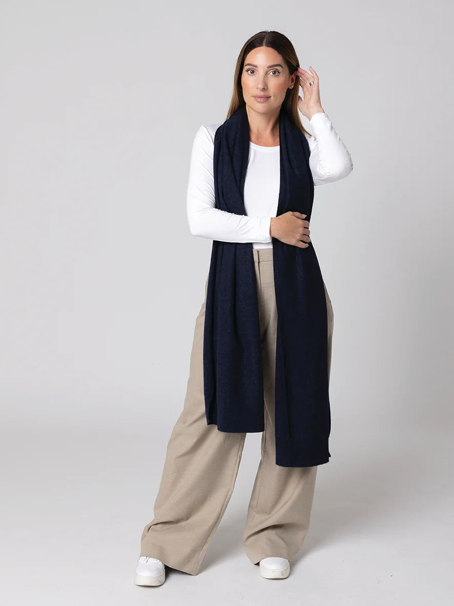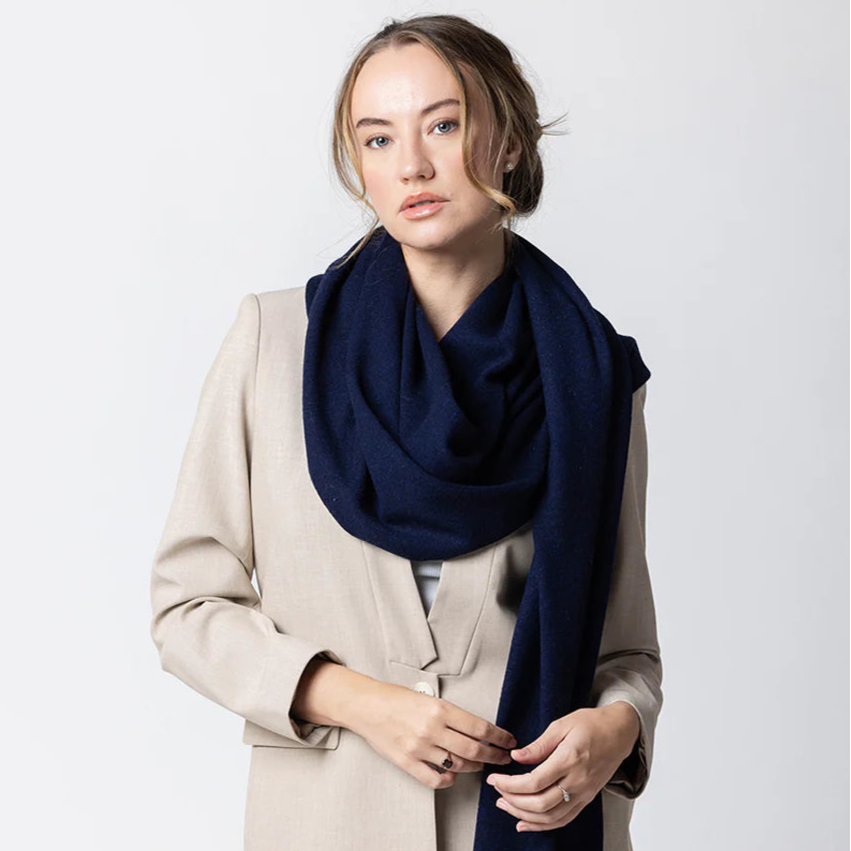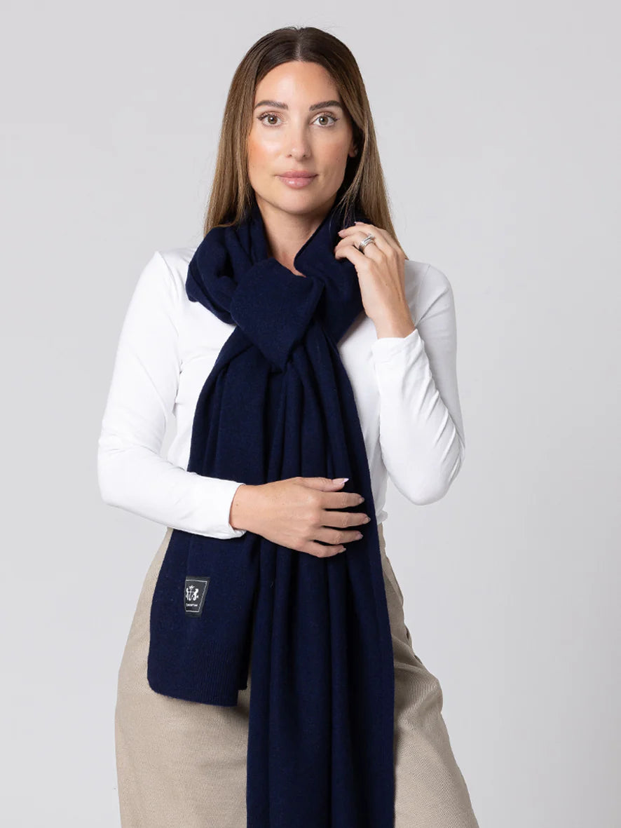 Wrap yourself in effortless style with The Stratford Wool Scarf, crafted from 100% Australian wool. In a deep, rich navy, it’s beautifully soft and warm. A timeless staple with a touch of understated luxury.